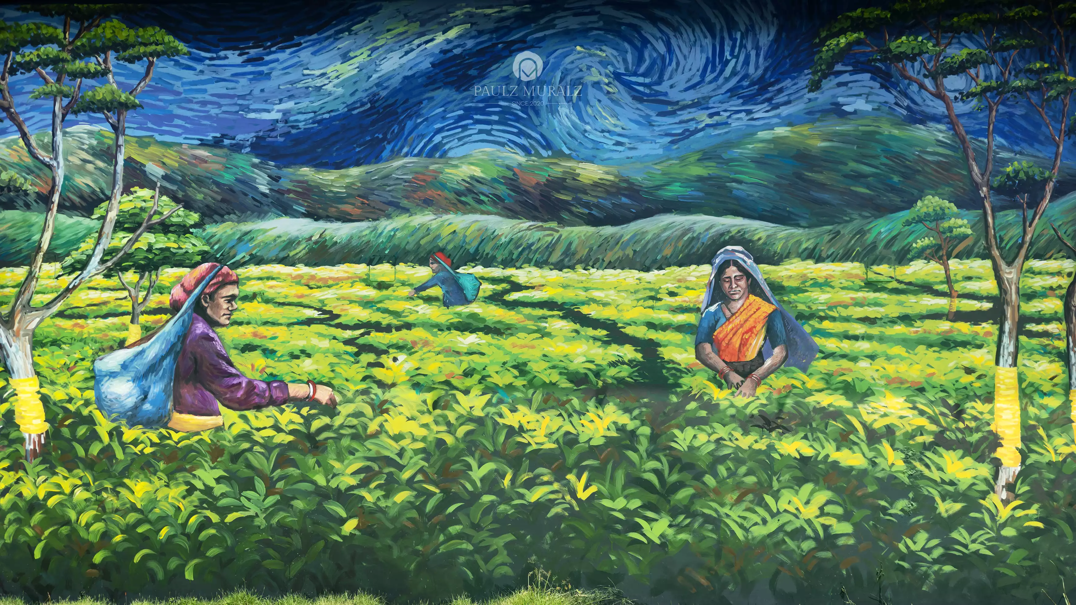 The mural named The Wall of the People which has come up on the facade of the factory on Makaibari tea estate.