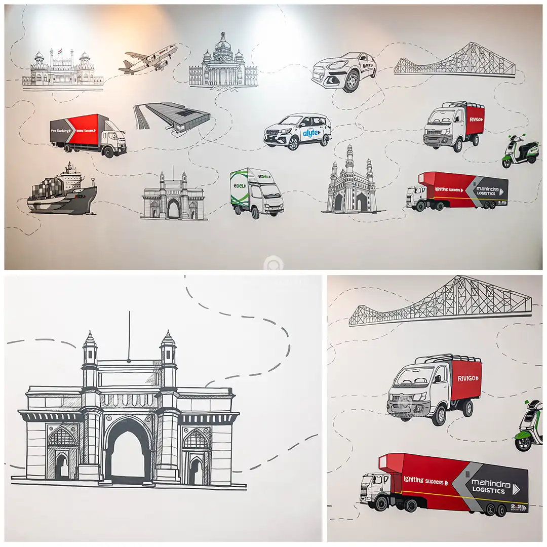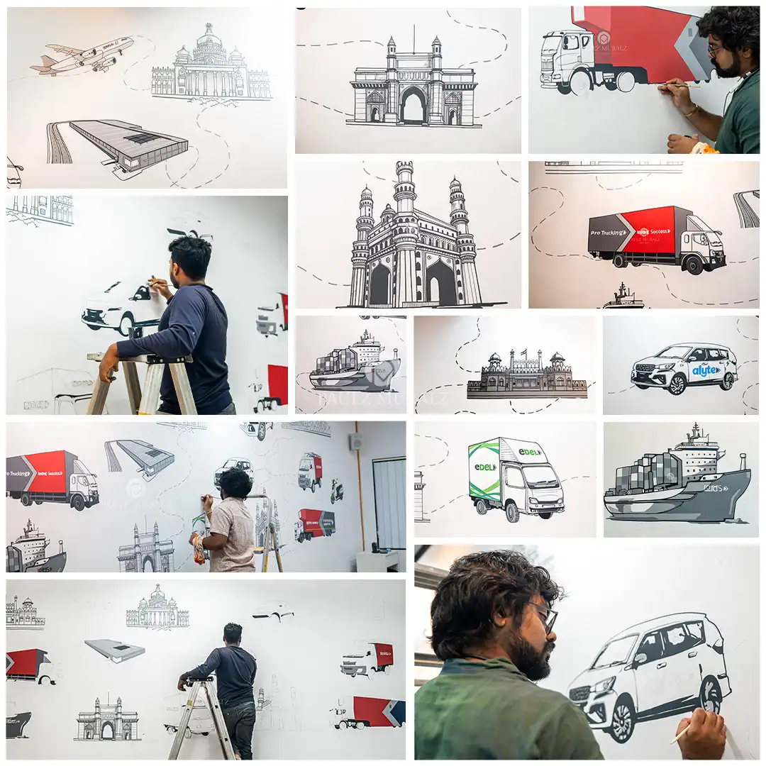 "This mural art showcases the journey of connectivity and progress, weaving together iconic landmarks, diverse modes of transport, and logistics vehicles. It symbolizes movement, innovation, and seamless integration, reflecting the spirit of growth and the power of linking people, places, and possibilities."