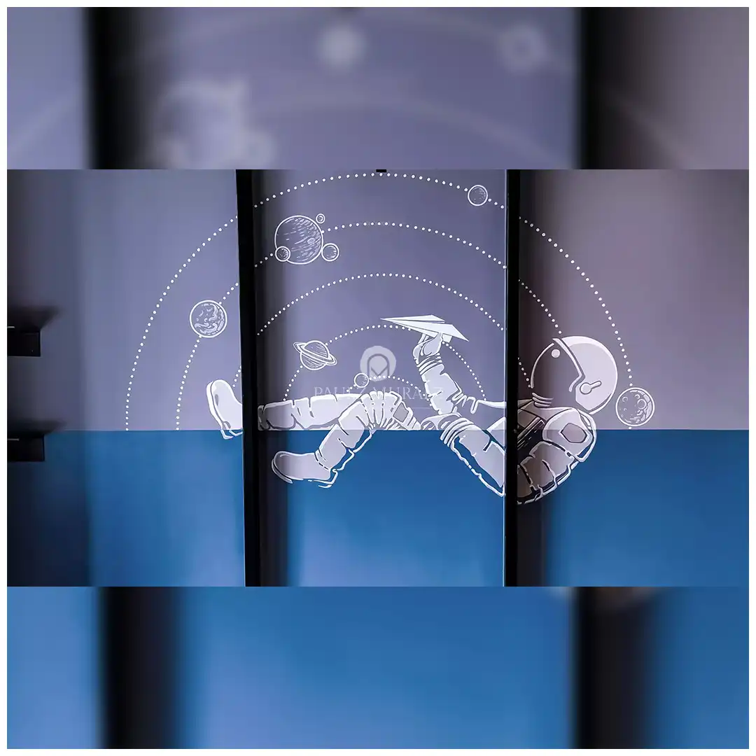 "This mural blends cosmic calm and creativity—an astronaut drifting through the stars, paper plane in hand."