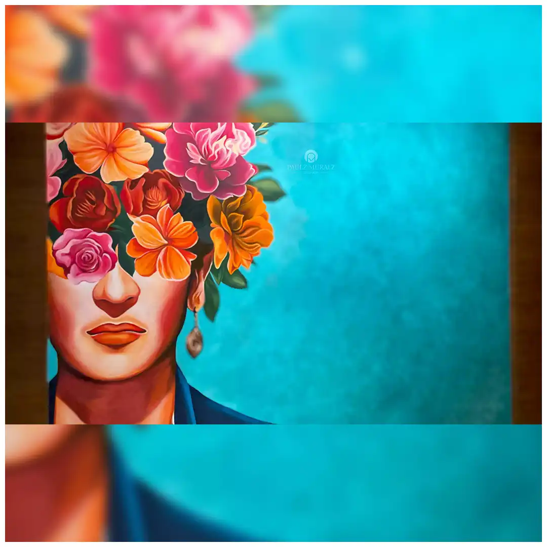 “This mural transforms a portrait into a garden of colors, evoking resilience, artistry, and inner beauty.”